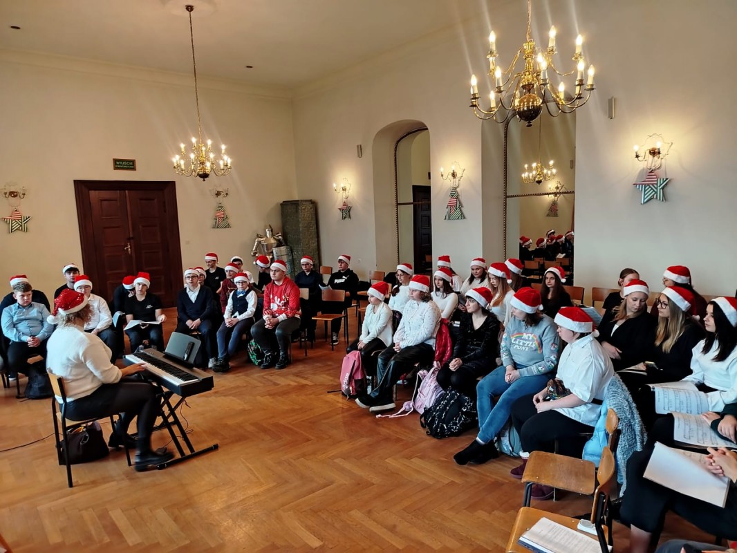 Podczas muzycznego poranka uczniowie integrowali się, wspólnie przygotowując kolędy i pastorałki oraz pracowali nad ich brzmieniem.